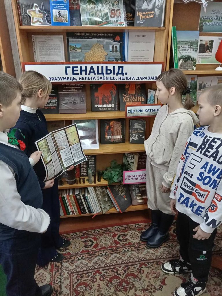 Библиотекарь рассказала ребятам, что такое «Холокост», «гетто». Дети услышали печальную статистику о количестве жертв Холокоста, о сожженных вместе с жителями деревнях, в том числе на территории Мостовского района, о лагерях смерти. Библиотекарь обратила особое внимание на судьбу евреев Песковского гетто. В ходе мероприятия прозвучали стихи поэта М. Джалиля «Варварство» и «Чулочки», участника Великой Отечественной войны, Героя Советского Союза, прошедшего все муки фашистских застенков.