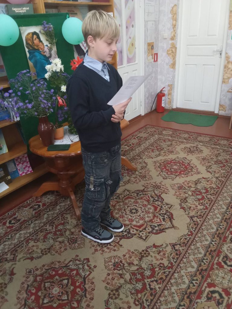 Радинский Руслан посвятил стихотворение своей любимой бабушке, Путиловская Н.В. прочитала любимое стихотворение С.Острового “Мама”, в исполнении Призван Т.Ч. звучали песни о маме. Активной участнице мероприятий Якубик В.П. были адресованы цветы и прекрасные пожелания в честь юбилея.